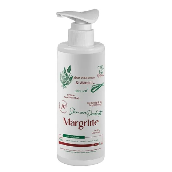 کرم آبرسان و مرطوب کننده آلوئه ورا مارگریت با جذب بسیار سریع و خاصیت روشن کنندگی و ترمیم کنندگی، محافظت در برابر عوامل مخرب محیطی، جوان کننده و تامین کننده رطوبت، شادابی و طراوت پوست در طول روز می باشد.