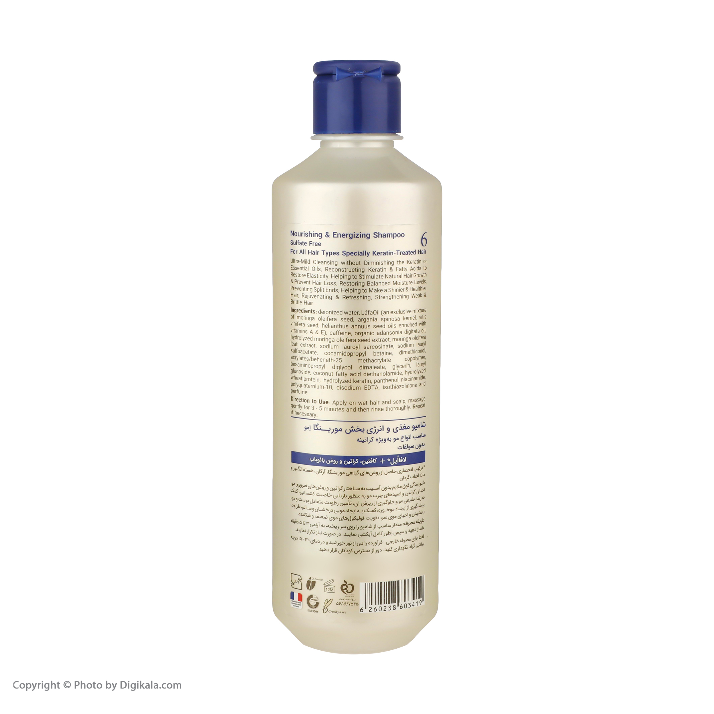 شامپو بدون سولفات مورینگا اِمو مدل 6 انواع مو به ویژه کراتینه 400 میلی لیتر